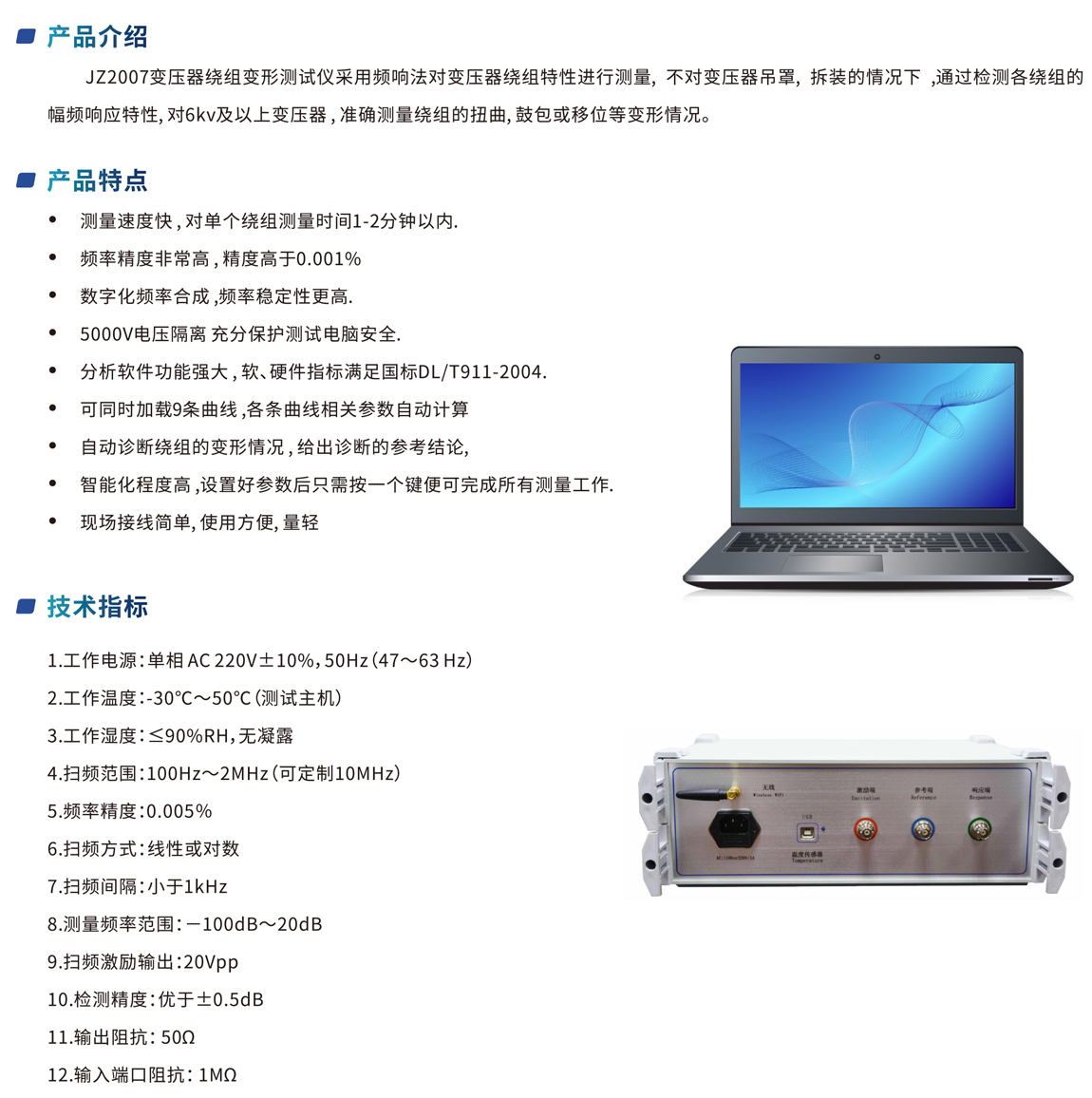 JZ2007 變壓器繞組變形測試儀